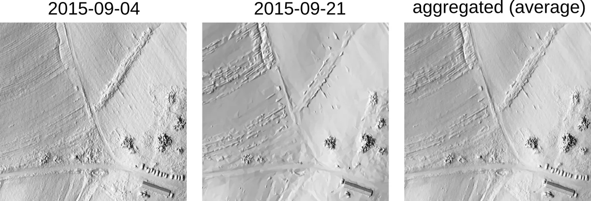 - Temporally aggregate maps over a given period of time - for example to derive monthly average elevation