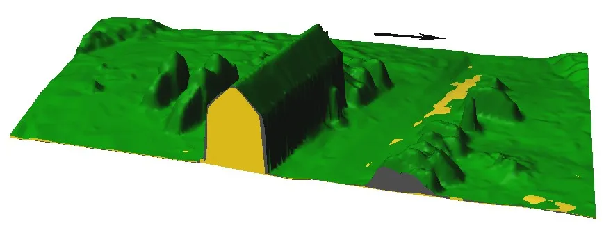 - Compute volume based on difference between bare ground and above ground feature, such as building