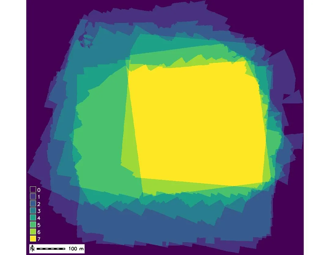 - Count: number of maps (temporal snapshots) where the given cell has non-null value (overlap)
