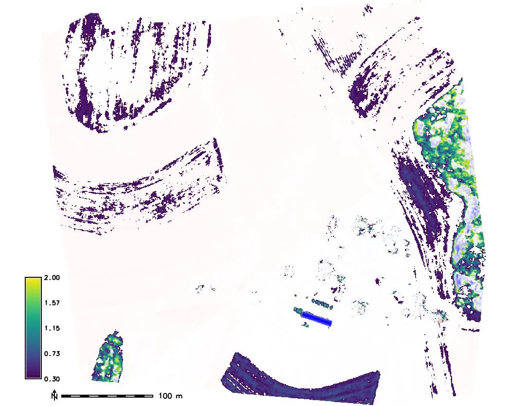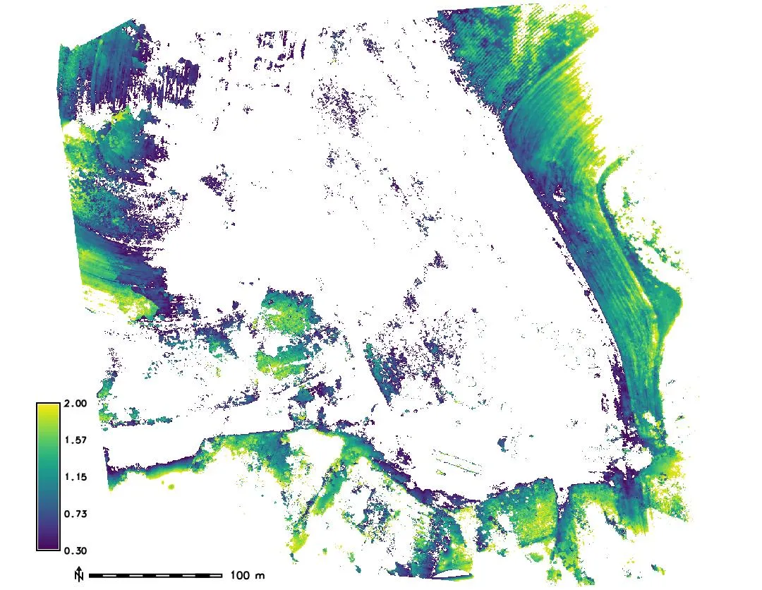 - Compute difference between UAS core and lidar bare ground surface